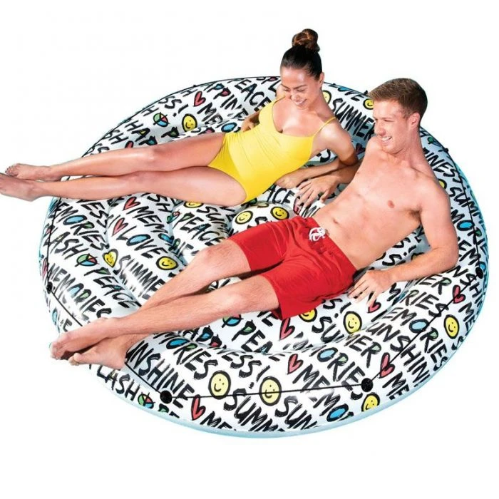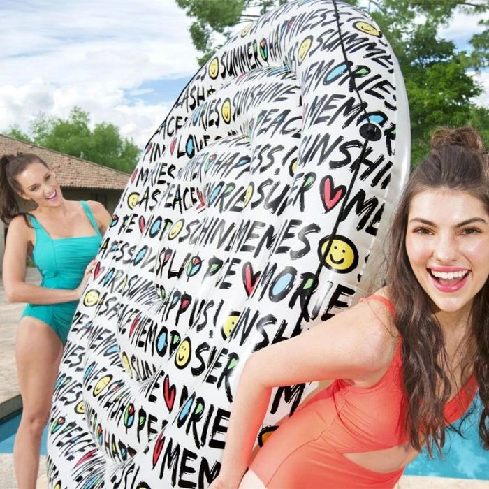 Float in style with Bestway’s Summer Quote Island float which has some pretty cool summer quotes and is perfect for pool time. Splash, Peace, Sunshine, Memories, Love, Summer, and Happiness all remind us of a beautiful sunny summer day. This supersized sitting area has a wraparound grab rope with built-in grommets making it easy to climb on. Max of two users at a time. Weight capacity 396.8 lb. Puncture resistant vinyl material. Unique and modern design. Interlocking quick release valve.