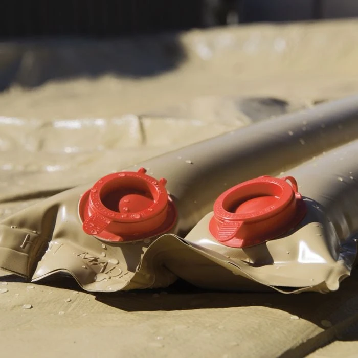 Matching tan, heavy-duty Pro-TEK Water Bags are double chambered to prevent rolling. Position bags before filling. Pro-Tek Water Bags will keep your cover grounded all winter long! Available in 8′ or 10′ lengths.