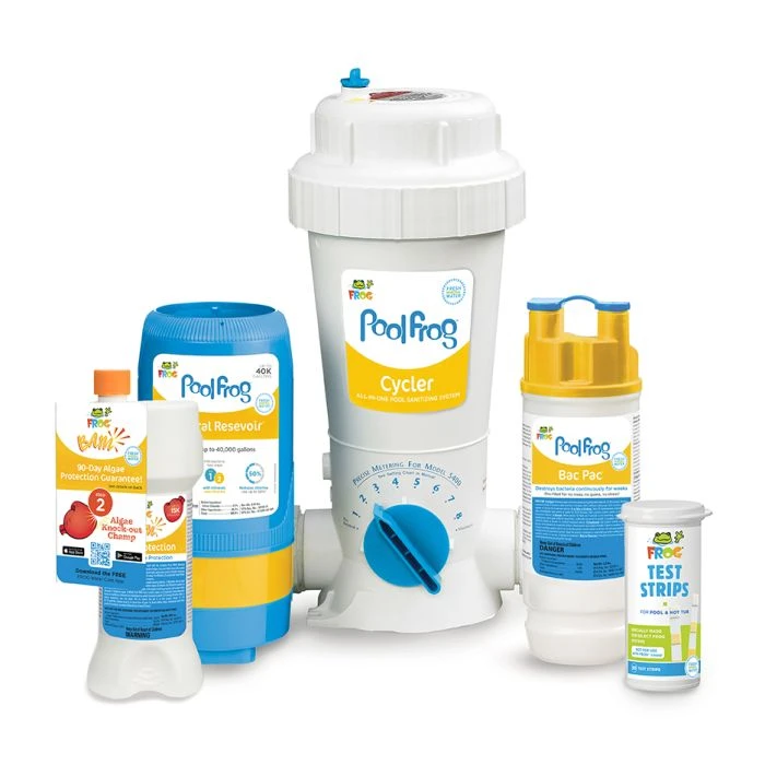 Sold separately: Chlorine Bac Pacs are required for operation and are sold separately. They are designed to dispense precise, low levels of chlorine for 1-3 weeks and fit into the Mineral Reservoir. Mineral Reservoirs are also separately for when you need refills. We also offer FROG® BAM® Algaecide (for existing Pool FROG® water systems that need a bit of extra help fighting algae).